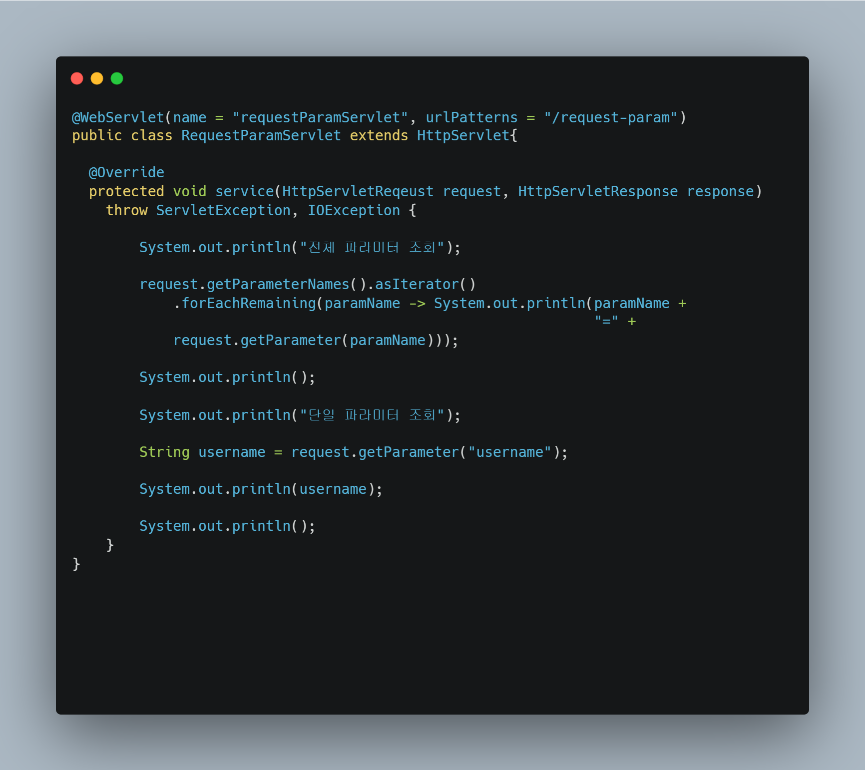 ** request.getParameter( )는 GET URL 쿼리 파라미터 형식도 지원하고, POST HTML Form 형식도